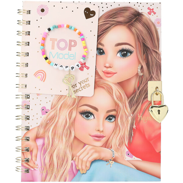 Skriv ner dina innersta tankar, drömmar och upplevelser i denna fina TOPModel dagbok med ett superfint modellmotiv och ett hjärtformat lås med nycklar.