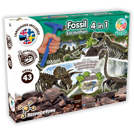 Utforska den fascinerande världen av paleontologi genom att upptäcka 4 fantastiska fossiler: Triceratops, T-Rex, Stegosaurus och Velociraptor. Lär dig om fossiler, dinosauriernas utrotning och professionella utgrävningstekniker.