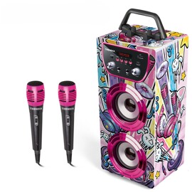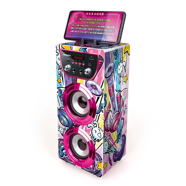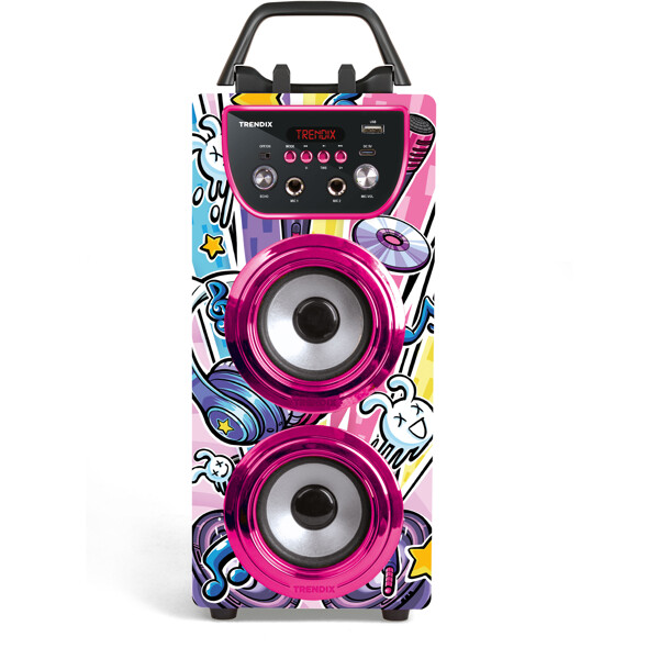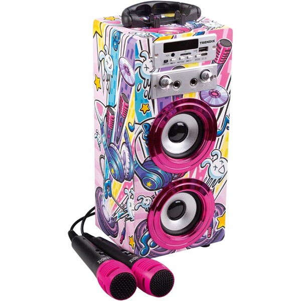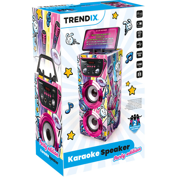 Redo för skratt, sång och showtime? Med Trendix Karaoke Maskin får hela familjen en rolig aktivitet att samlas kring – perfekt för fredagsmyset, barnkalaset eller regniga dagar inomhus!Funktioner barn (och vuxna!) älskar:Två mikrofoner – sjung duetter med syskon, kompisar eller föräldrar!10W högtalare – klart och kraftfullt ljud som fyller rummet.Bluetooth-anslutning – spela upp era favoritlåtar direkt från mobilen eller surfplattan.FM-radio – lyssna på era favoritsändningar direkt i maskinen.Eko-effekt – ge sången en proffsig och rolig touch.Koppla ihop flera enheter – få ännu större ljud och fler att sjunga med!Telefonställ – perfekt för att följa låttexter eller spellistor direkt från skärmen.Portabel med handtag – lätt att ta med mellan barnrummet, vardagsrummet eller till mormor och morfar.Laddas med USB-C – smidigt, snabbt och kompatibelt med dagens laddare.Trendix Karaoke Maskin är enkel att använda, tålig nog för små händer och full av musikglädje. Oavsett om det är småstjärnor eller hela familjebandet som uppträder – med Trendix blir varje dag lite festligare!