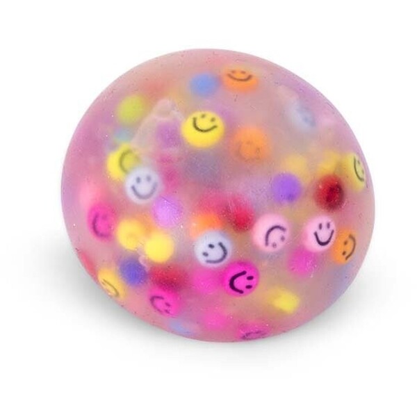 Vi återuppväcker glädjen från 90-talets smiley-mani med en färgstark och skojigt glad smiley-klämboll!