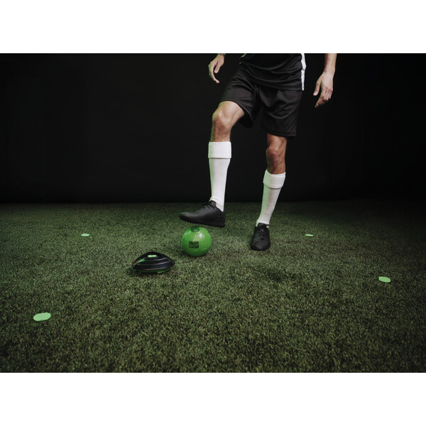 Tre hastighetslägen erbjuder varierat spel och hjälper dig att förbättra dina fotbollsfärdigheter. Den inbyggda LCD-skärmen håller koll på din poäng och registrerar dina bästa resultat. Sätt upp personliga mål eller bjud in vänner till en dynamisk fotbollsmatch i vardagsrummet. Med fyra smarta skivor kan du markera spelområdet och justera svårighetsgraden. Soccer Bot anpassar sig dessutom till underlaget, tack vare en switch för standard- eller boostläge.