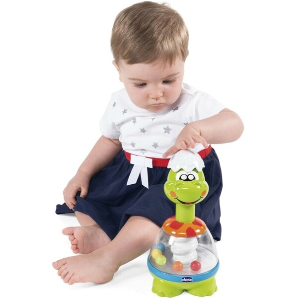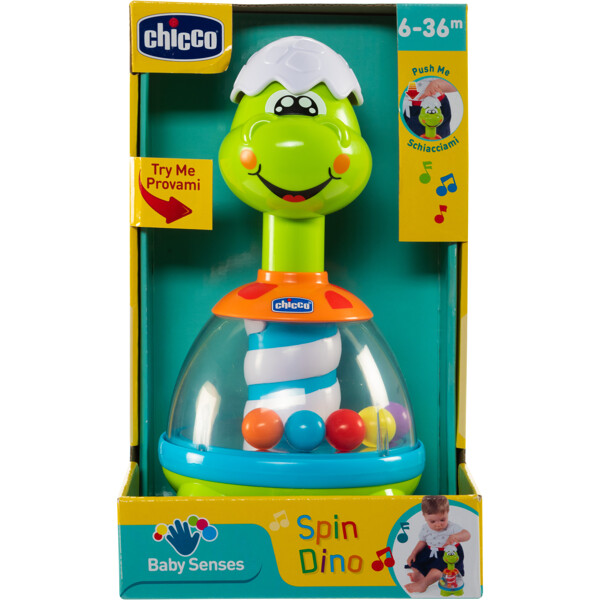 Spin Dino från Chicco är en leksak i form av en söt dinosauriesom hjälper ditt barn att utveckla manuell koordination och hörsel.