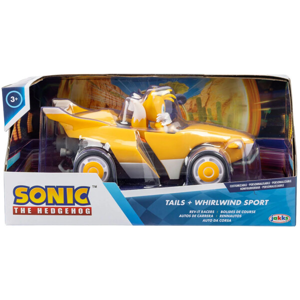 Racing Rev-It Racer Tails med Whirlwind Sport är ett spännande tillskott till alla Sonic the Hedgehog-samlingar. Denna 6,3 cm figur levereras med en anpassad Rev-It Racer, inspirerad av höghastighetsactionen i Sonic Racing: CrossWorlds. Fordonet har utbytbara komponenter som ger oändliga möjligheter till anpassning och kreativitet. Placera helt enkelt fordonet på en plan yta, varva det framåt och släpp för att se Tails rusa iväg - inga batterier krävs.