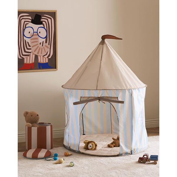 Tältet är tillverkat i lätt och slitstarkt polyestertyg, med en harmonisk färgskala som passar in i många olika typer av inredningar. Lägg till några kuddar eller en mjuk matta, så blir det ännu mer ombonat.