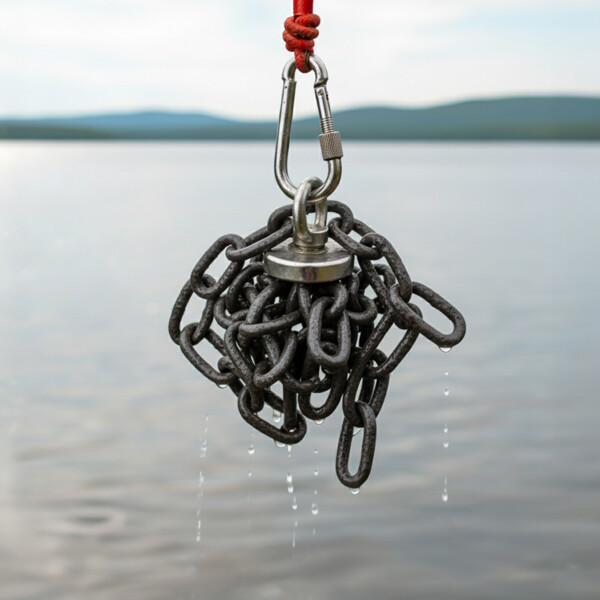 Vini Magnetfiske är en fiskemagnet med en dragkraft på 60 kg och 20 meter rep med karbinhake. Ett par anti-slip handskar medföljer (one size).