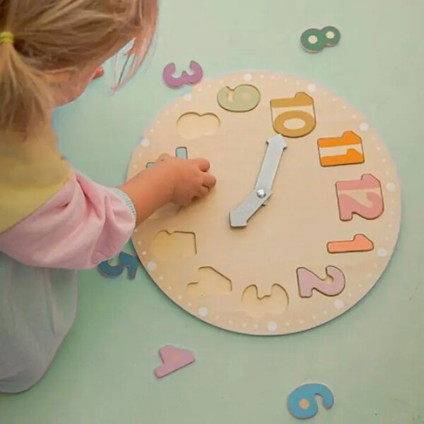 Vad är klockan? Nu kan du lära dig klockan på ett roligt och pedagogiskt sätt. Med Jabadabados pusselklocka i trä med flyttbara visare kan ni tillsammans utforska hur en klocka fungerar. Du kan även räkna hur många sekunder det går på en minut och hur många minuter det går på en timme. Ställ in visarna och träna på vad klockan visar för tid. Klockan fungerar även som ett pussel då siffrorna är lösa pusselbitar där både färg och form kan tränas medan pusslet läggs. Uppmuntrar till pedagogisk lek.