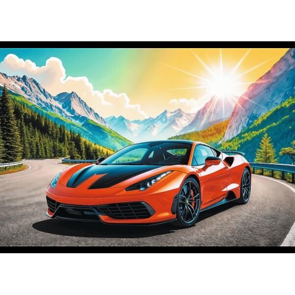 Pussel 100 Bitar Trefl A Race Against Time är ett pussel med coolt motiv av en sportbil.