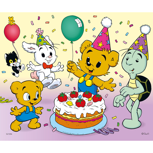 Ett häligt kalasmotiv med Bamse och hans vänner. Fira med Bamse kalsmotiv.