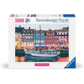 Pussel 1000 Bitar Copenhagen Denmark har ett motiv från det berömda Nyhavn i Köpenhamn. Färgglada hus, uteserveringar och båtar i kanalen.