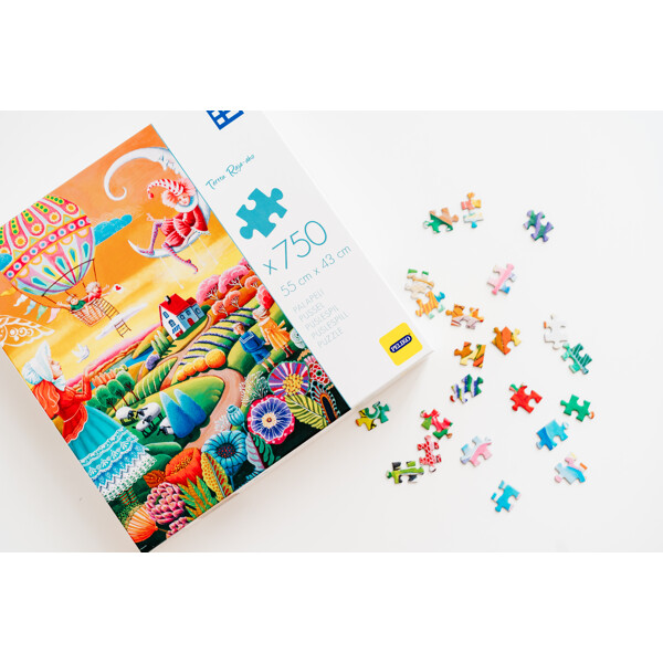 Ett 750 bitars pussel från Peliko, med ett konstfullt motiv av den finska konstnären Terttu Raja-aho. Det färgrika, fantasifulla och detaljerade motivet är spännande att lägga och upptäcka.