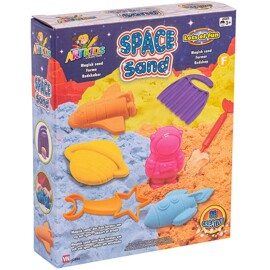 Artkids Space Magisk Sand är ett pysselset med 3 påsar magisk leksand i olika färger, former och verktyg.