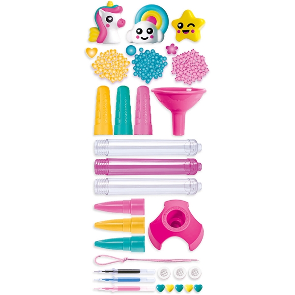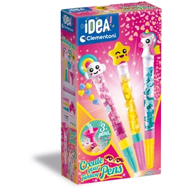 Ett originellt kreativt kit för att sätta ihop 3 pennor och göra dem personliga med olika dekorationer i tropisk stil . Ett praktiskt och innehållsrikt kit som innehåller: 3 pennor, 4 bläck i olika färger, 3 figurer och alla verktyg för att tillverka dem. Ett nytt Idea-set som ger barnen möjlighet att skapa och anpassa sina pennor med massor av tillbehör och dekorationer. Barnen kommer att kunna göra mycket mer än att bara göra en penna personlig: de kan skapa genom att släppa loss sin fantasi. Utvecklad och designad i Italien.