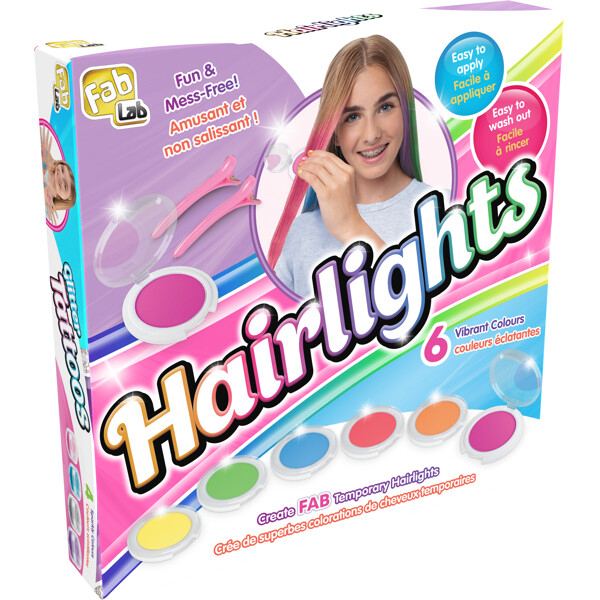 Fab Lab-hårfärgningssetet gör det enkelt att skapa trendiga frisyrer! Färgen är lätt att applicera och tvätta bort. Passar alla hårtyper.