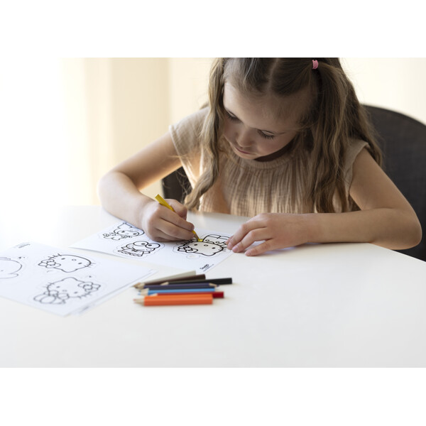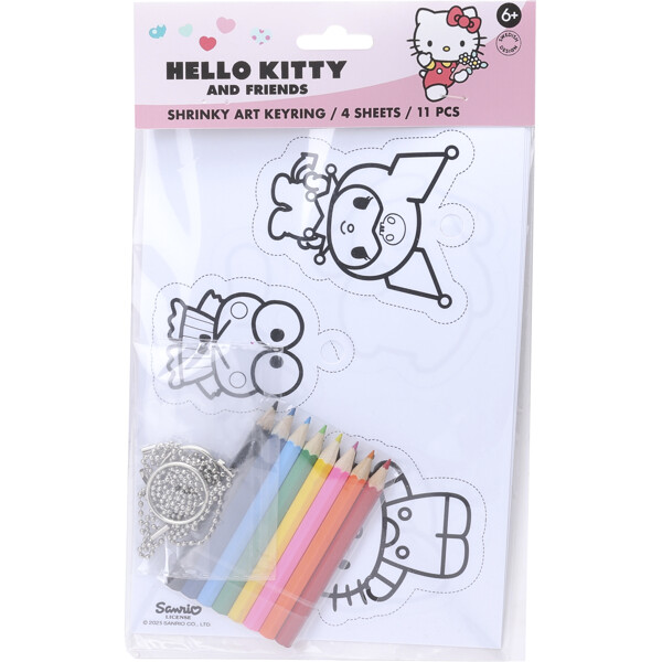 Setet innehåller fyra ark krympplast med 11 motiv, åtta pennor, två nyckelringar och nio kedjor. Allt som behövs för ett kreativt och roligt pyssel till alla små Hello Kitty-älskare!