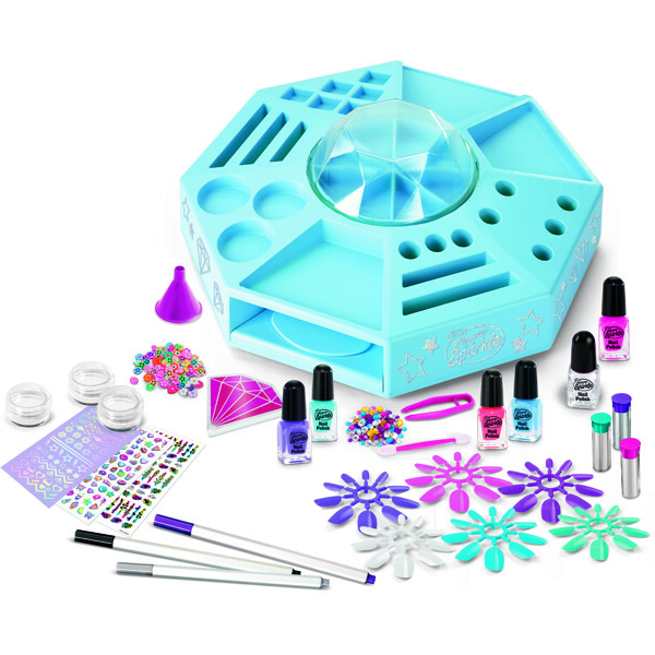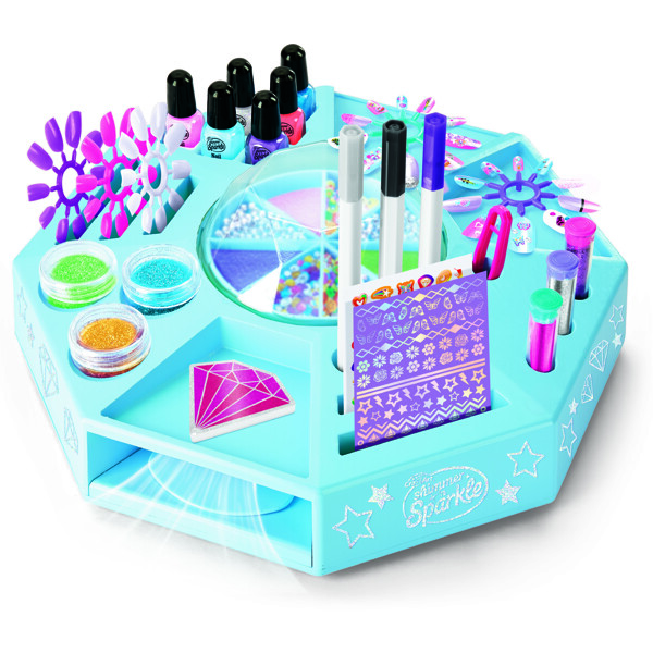 DET ULTIMATA NAGELSETET – Skapa glittrande naglar med oändliga stilmöjligheter! Designa hundratals fantastiska manikyrer med hjälp av färgglada nagellack, nagelpennor, glitter, paljetter och mer. Allt du behöver för den ultimata nagelstudion hemma!FANTASTISKA MANIKYRER – Fila, måla och dekorera dina naglar med de 6 underbara nagellacken. Lägg till bländande detaljer med nagelpennor, glitter, glimmerpulver, paljetter och klistermärken för en trendig och glamourös finish!VERKLIG NAGELTORK – Inkluderar en verklig fungerande nageltork för en professionell salongskänsla. Måla bara naglarna, placera dem under torken och njut av snabbtorkande, långvariga resultat. De inbyggda lamporna gör varje manikyr extra speciell!GLITTRANDE FINISH – Personalisera dina naglar med 3 påsar paljetter, 3 påsar glitter, 3 påsar glimmerpulver, 3 nagelpennor, 3 ark nagelklistermärken och 72 självhäftande nagelklistermärken. De medföljande instruktionerna visar hur du skapar hundratals bländande designer att dela med vänner!SETET INNEHÅLLER:1 x Nageltork6 x Nagellack3 x Påsar Paljetter3 x Nagelpennor3 x Ark Nagelklistermärken72 x Självhäftande Nagelklistermärken3 x Påsar Glitter3 x Påsar Glimmerpulver1 x Instruktioner