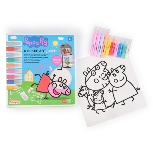 Med Greta Gris Sticker Art kommer dina barn ha kul med att skapa teckningar och klistermärken med sina favoritkaraktärer från denna populära serie. Dessutom tillåter 3D-kanter dem att fylla i klistermärken med gel-pennor utan att gå utanför linjerna. Skapa de bästa Greta Gris-klistermärkena!
