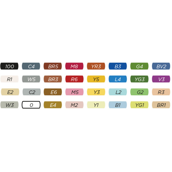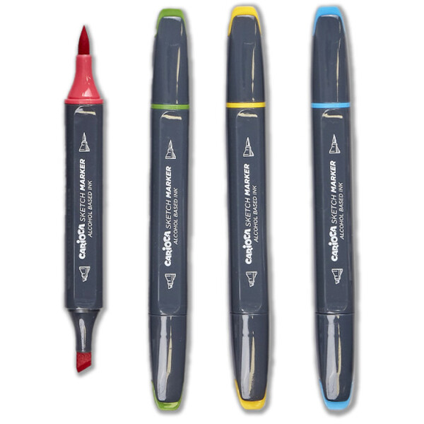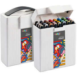 Ett fint set med 32 st dubbelspetsiga tuschpennor med alkoholbaserat bläck. Mejselspets och borstspets. Enkel, randfri färgblandning. Alkoholbaserat bläck med låg lukt. Snabb torkning. Färgkod på korken. Ergonomiskt handtag.