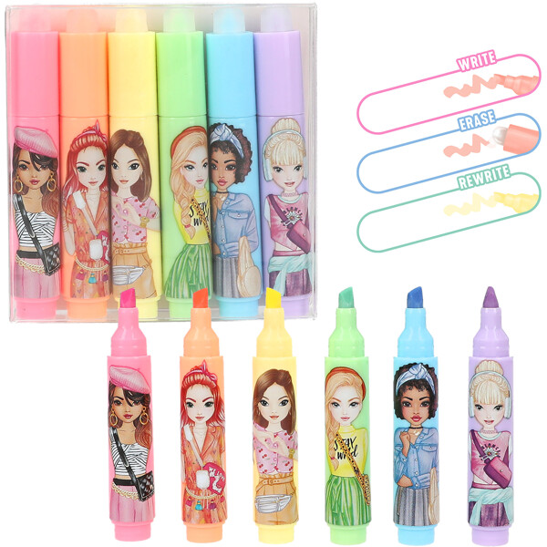 Markera, sudda och markera igen! Med dessa 6 mini highlighterpennor från TOPModel kan du enkelt markera och framhäva text och sedan sudda bort färgen med den runda änden på pennan (värmekänslig färg som försvinner vid friktion när den värms upp).