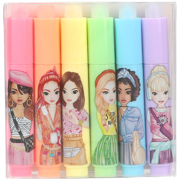Innehåller 6 olika, fina pastellfärger: rosa, orange, gul, blå, grön och lila. Alla pennor har snygga TOPModel-tryck och kan enkelt sättas ihop till en eller flera större pennor.