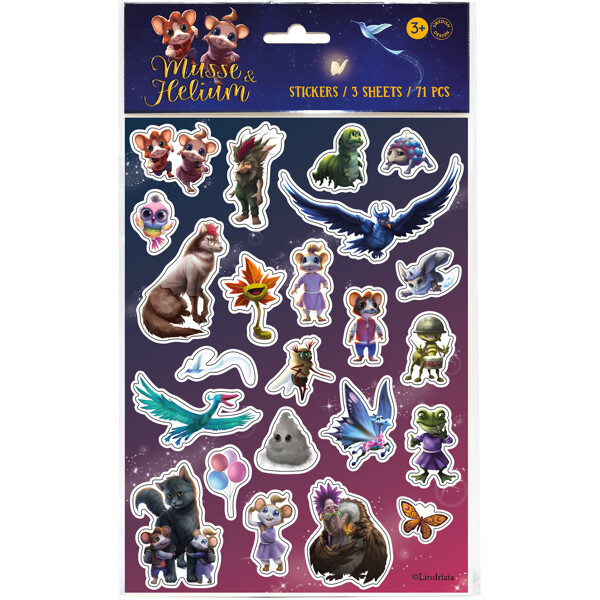 Setet innehåller 71 magiska pappersstickers för alla små Musse & Helium-fantaster. Med tre ark fulla med Musse & Helium och deras vänner, kan barnen pyssla och dekorera på allt från teckningar till kalasinbjudningar. Klistermärkena är enkla att använda perfekt för både lekstunder och presentidéer!
