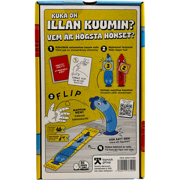 Kasta och tävla mot dina vänner i olika utmaningar – vem vinner, kycklingen eller korven? Det perfekta spelet för spelkvällar. För två eller fler spelare.