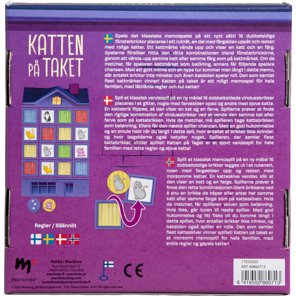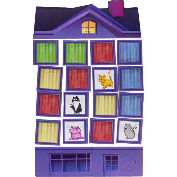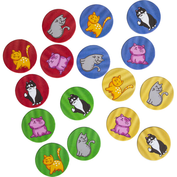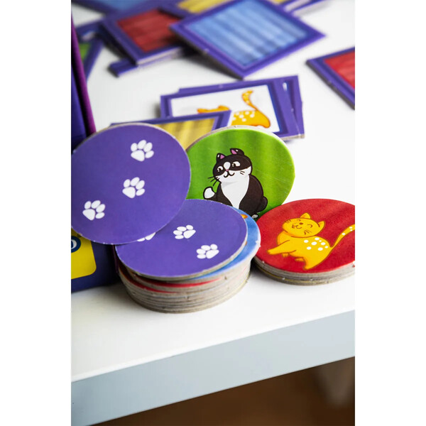 16 memobrickor läggs ut, en del med färgsidan uppåt och resten med roliga katter. Vid varje spelrunda visas ett runt kattmärke med katt och bakgrundsfärg. Spelarnas uppgift är att hitta exakt rätt kombo av katt och färg, genom att vända en memobricka. Om både färg och katt stämmer, får spelaren kattmärket och den som samlar flest brickor vinner. Kul för hela familjen!