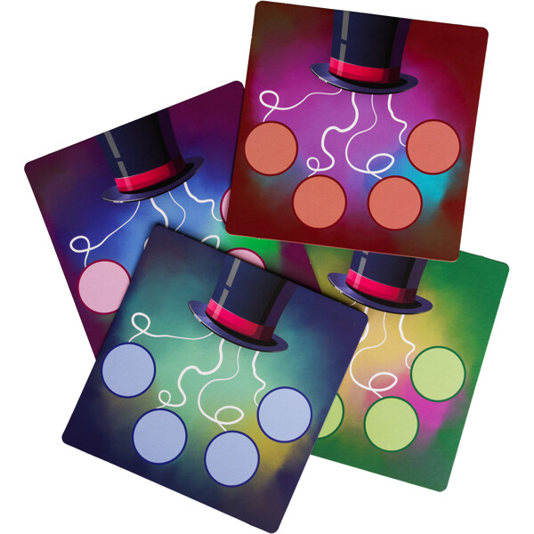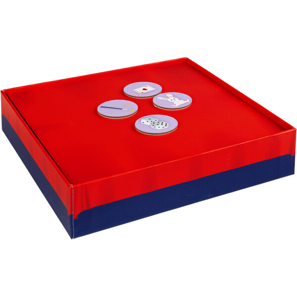 Bildbrickor placeras inuti spelboxen och spelarna får en stund att memorera dem. Sedan stängs locket, brickorna blandas och en av dem försvinner i hatten! Locket öppnas och spelarna försöker lista ut vilken bricka som saknas. Den som gissar rätt vinner brickan och den första som samlat fyra brickor vinner!