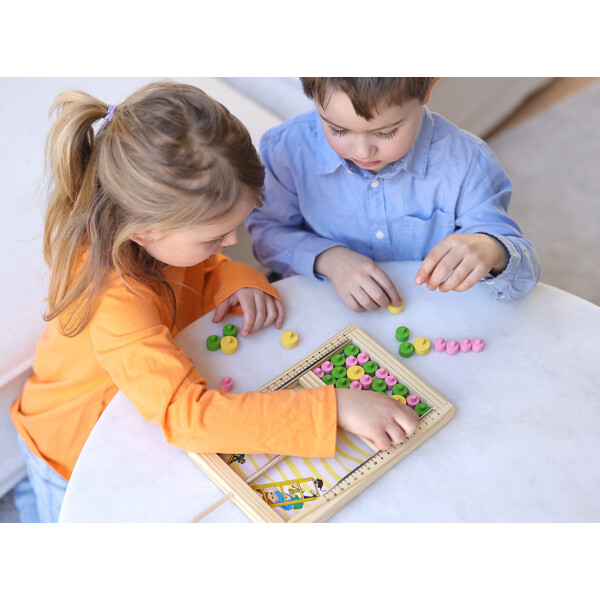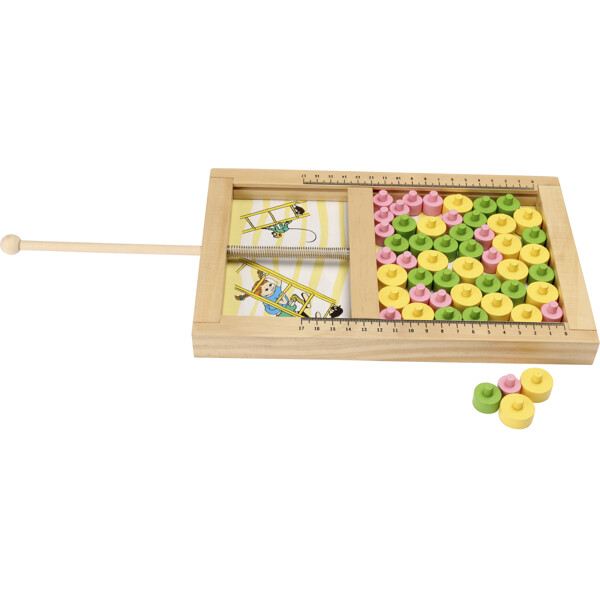 Turas om att plocka block men se upp, för stången rör på sej om du inte är försiktig. Blocken är värda olika poäng, så det gäller att våga plocka dom värdefulla utan att väcka stången. Den som har flest poäng när spelet är slut vinner!