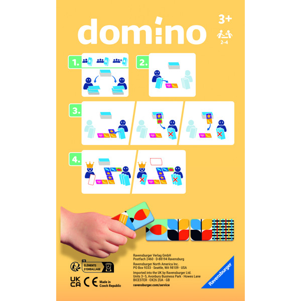 Spelarna turas om att lägga ut sina dominobrickor. En bricka måste läggas så att bilden på ena änden passar ihop med bilden på den bricka som redan ligger där. Brickor får bara läggas i någon av de två ändarna. Den som först blir av med alla sina brickor vinner spelet!