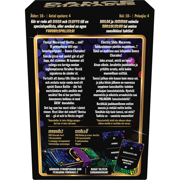 Sätt dina danskunskaper på prov i detta partyspel! Din uppgift är att utföra dansrörelser från korten medan de andra gissar. Den bästa dansaren vinner! Kompatibelt med Alexa och Google Assistant.