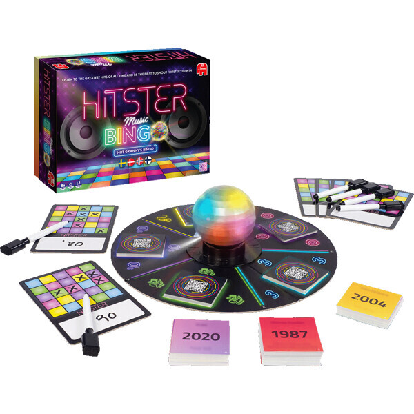 Hitster Bingo – Musikquiz möter bingofeber!Dansa in i nostalgins värld med Hitster Bingo – ett fartfyllt musikspel där hitlåtar från alla tider sätter tonen. Glöm mormors bingo, det här är spelkvällens höjdpunkt med blinkande discoljus och ikoniska hits!Så funkar spelet:Snurra discokulan och låt appen avslöja nästa musikklipp. Utmaningarna varierar – gissa årtiondet, artisten eller om låten är före eller efter millennieskiftet. Fyll en rad på din bingobricka först och ropa ”Hitster!” för att vinna.Innehåll:225 musik-kortDiscokula med färgat ljus och timer6 avtorkningsbara bingobrickor6 pennorGratis Hitster-appSpelare: 2–10Speltid: ca 30 minuterSpråk: Nordiska versioner (SE, NO, DK, FI)Ett pulshöjande festspel för musikälskare. Perfekt för förfesten, spelkvällen eller familjeslaget – bara tryck play och låt festen börja!
