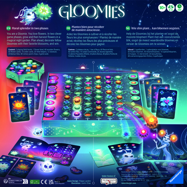 I Gloomies magiska värld kretsar allt kring att så och skörda de mest magnifika blommorna. I två spännande faser fylls spelplanen först med blommor och skördas sedan igen. Den som är smart och har lite tur med korten säkrar de mest värdefulla blommorna och vinner detta enkla strategispel!