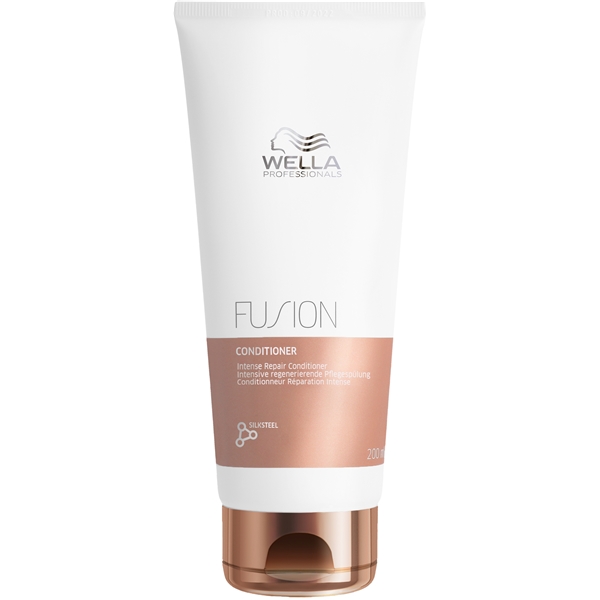 Wella Professionals serie FUSION bygger upp håret inifrån och reparerar även det yttersta skiktet. Även mycket skadat hår kommer att kännas mer elastiskt och smidigt samt vara upp till 95% mer motståndskraftigt mot nya skador.