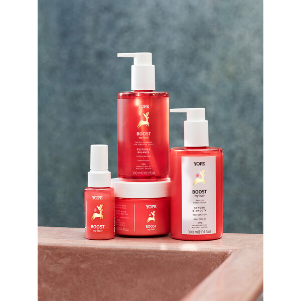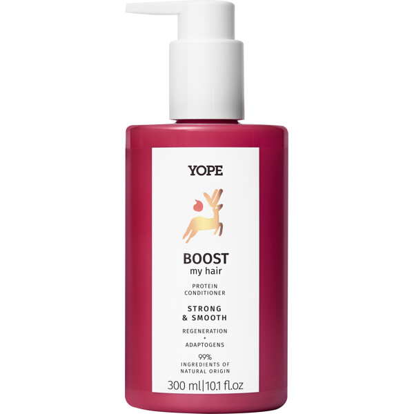 YOPE Boost My Hair Protein Conditioner ger BOUNCE-effekt och ett hår fullt av liv.
