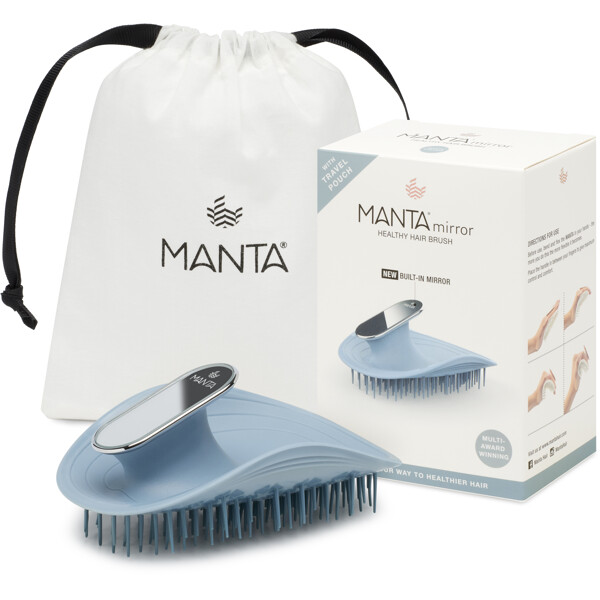 Den prisbelönta MANTA®-borsten finns nu i en praktisk version med inbyggd spegel, perfekt för snabba touch-ups när du är på språng. Du slipper bära med dig flera produkter – denna smidiga allt-i-ett-lösning hjälper dig att hålla håret välvårdat hela dagen.
