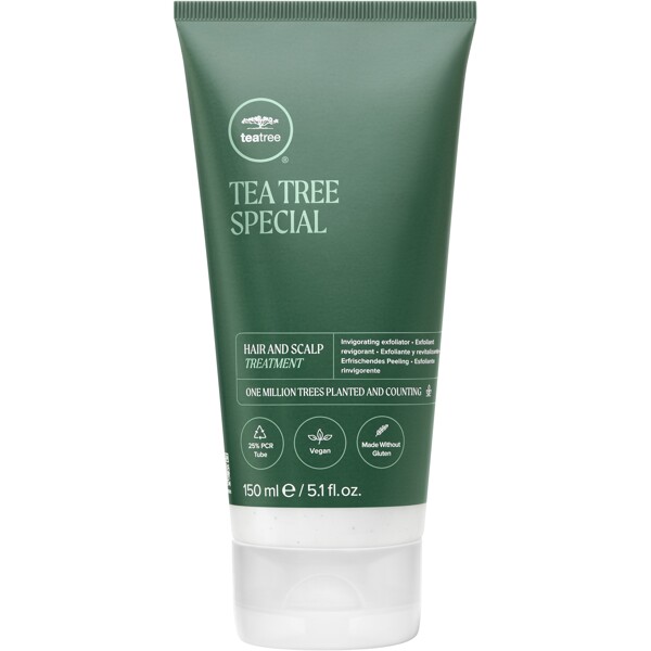 Tea Tree Hair and Scalp Treatment är en inpackning som reparerar och återfuktar skadat, torrt hår och mjukgör hårbotten. En unik kombination av näringsämnen som vårdar håret och reparerar skadade längder samt skyddar mot framtida skador. En mjukgörande mix med ingredienser som stärker och mjukgör hårbotten. Inpackningen är veganskt och färgbevarande samt fri från parabener och gluten.
