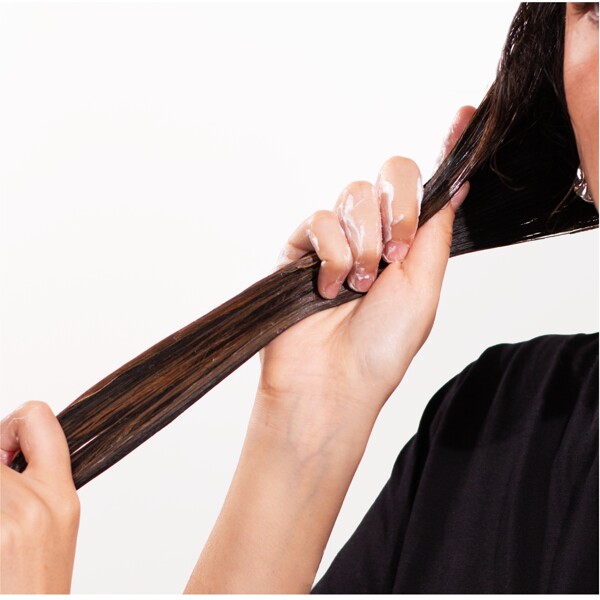 Applicera en tillräcklig mängd av Hair Hydration Mask; justera efter hårlängd.