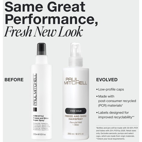 Firm Hold Style Freeze & Shine Hairspray från Paul Mitchell ger håret en kraftfull stadga med ett “minne” som gör att frisyren håller hela dagen. Denna hårspray ger maximal hållbarhet samtidigt som den tillför en vacker glans.