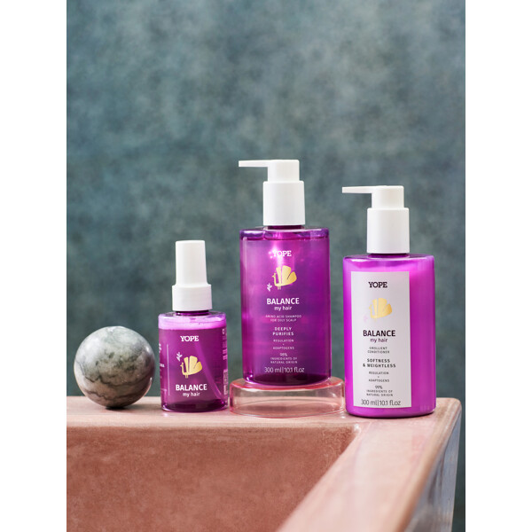 YOPE-PRODUKTER KOMPLETTERAR VARANDRA Beroende på behoven hos ditt hår och hårbotten kan du skapa ditt eget ritual genom att kombinera produkter från HYDRATE-, BOOST- och BALANCE-serierna.