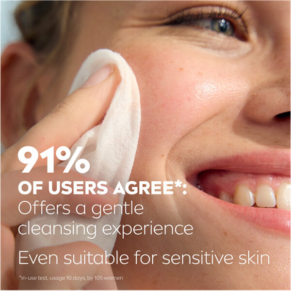 Nivea 3 in 1 Sensitive Cleansing Wipes är växtbaserade rengöringsservetter med SkinGentle-komplex som är snälla mot huden och skyddar dess fuktbalans.