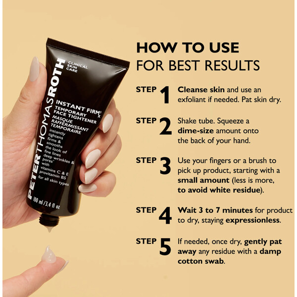 Peter Thomas Roth Instant FIRMx® Temporary Face Tightener ger en omedelbar uppstramningseffekt som synbart reducerar fina linjer, djupa rynkor och porer, med en effekt som kan hålla hela dagen*.