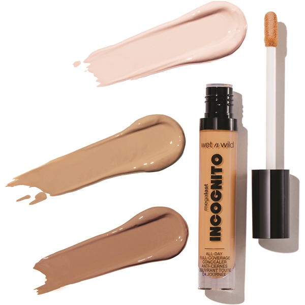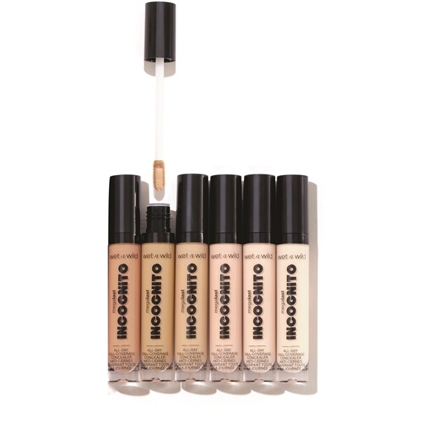 MegaLast Incognito Full Coverage Concealer från wet n wild är berikad med närande och återfuktande ingredienser som sheasmör, lakrisrotsextrakt och mangofrösmör. Den är långvarande och byggbar med medium till full täckning samt ger en matt finish.