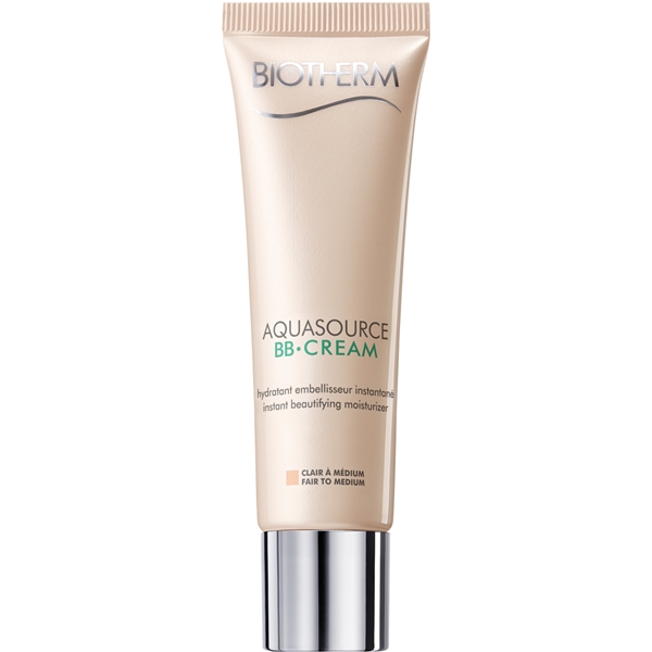 Aquasource BB Cream från biotherm är en BB-creme som återfuktar huden samtidigt som den jämnar ut hudtonen och skyddar med solskyddsfaktor 15. BB-cremen innehåller Life Plankton™ som finns i de varma termalkällorna i Frankrike. För alla hudtyper.