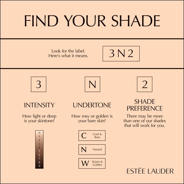 Hitta din underton:- C: Cool. Huden har en rosa underton och blir lätt bränd i solen.- N: Neutral. Huden har en jämnare hudton som varken är rosa eller gyllene.- W: Warm. Huden har en gyllene eller olivfärgad ton och den blir lätt solbrun utan att bli bränd.
