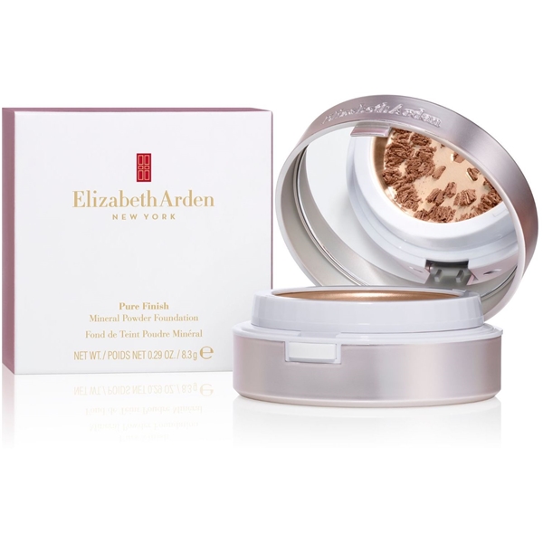 Elizabeth Arden Pure Finish Mineral Powder Foundation är ett viktlöst mineralpuder med naturlig, mjuk täckning. Smälter ut jämnt in i huden utan att lägga sig i linjer och torka ut huden.