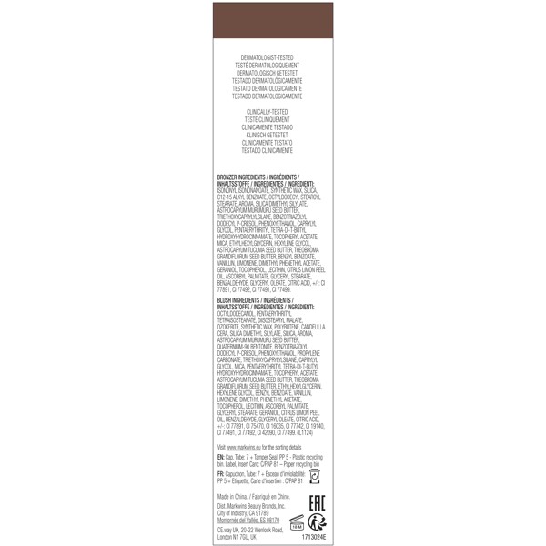 OCTYLDODECANOL, PENTAERYTHRITYL TETRAISOSTEARATE, DIISOSTEARYL MALATE, OZOKERITE, SYNTHETIC WAX, POLYBUTENE, CANDELILLA CERA, SILICA DIMETHYL SILYLATE, SILICA, AROMA, ASTROCARYUM MURUMURU SEED BUTTER, QUATERNIUM-90 BENTONITE, BENZOTRIAZOLYL DODECYL P-CRESOL, PHENOXYETHANOL, PROPYLENE CARBONATE, TRIETHOXYCAPRYLYLSILANE, CAPRYLYL GLYCOL, MICA, PENTAERYTHRITYL TETRA-DI-T-BUTYL HYDROXYHYDROCINNAMATE, TOCOPHERYL ACETATE, ASTROCARYUM TUCUMA SEED BUTTER, THEOBROMA GRANDIFLORUM SEED BUTTER, ETHYLHEXYLGLYCERIN, HEXYLENE GLYCOL, BENZYL BENZOATE, VANILLIN, LIMONENE, DIMETHYL PHENETHYL ACETATE, TOCOPHEROL, LECITHIN, ASCORBYL PALMITATE, GLYCERYL STEARATE, GERANIOL, CITRUS LIMON PEEL OIL, BENZALDEHYDE, GLYCERYL OLEATE, CITRIC ACID, +/-: CI 77891, CI 75470, CI 16035, CI 77742, CI 19140, CI 77491, CI 77492, CI 42090, CI 77499.