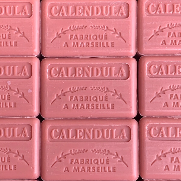 Handgjord fransk naturtvål från Marseille med en mild doft av ringblomma.