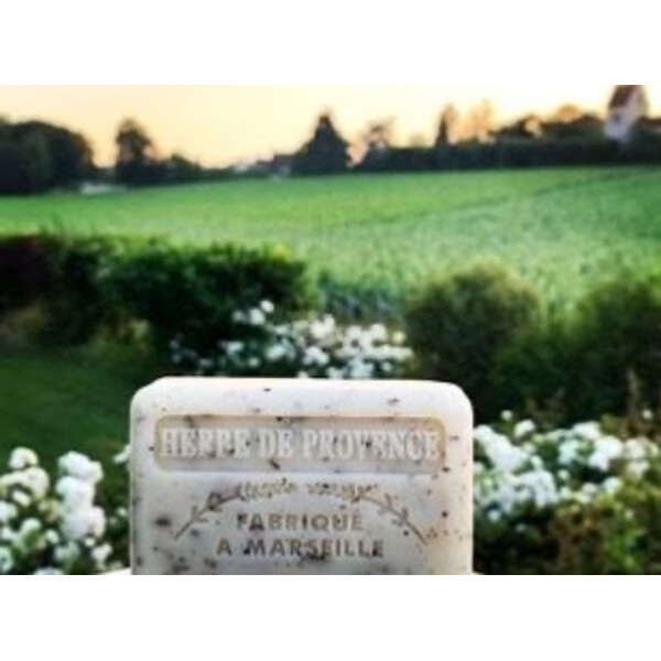 Den är tillverkad av naturliga och vegetabiliska ingredienser, löddrar rikligt och innehåller kross som ger en mild peelingeffekt. Tvålen sprider en örtig, frisk doft med inslag av sydfransk natur, rengör på djupet och lämnar huden mjuk och fräsch.