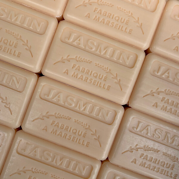 Handgjord fransk naturtvål från Marseille med en klassisk, blommig doft av jasmin.