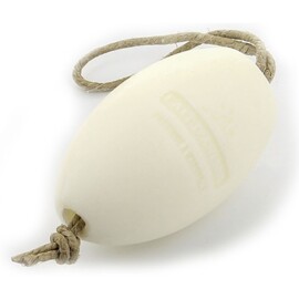 Handgjord fransk tvål från Marseille berikad med naturlig åsnemjölk, känd för sina mjukgörande och vårdande egenskaper. Tvålen rengör skonsamt och lämnar huden silkeslen och återfuktad. Den har en mild, krämig doft som ger en känsla av renhet och välbefinnande. Det praktiska repet gör att tvålen enkelt kan hängas i duschen, badrummet eller köket för att hållas torr mellan användningarna.